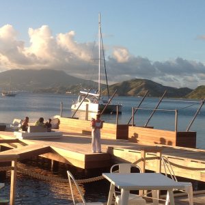 Slow start today until the Caribbean Princess tooted her horn and 3000 tourists hit the dock 300m away. Funny how passengers on these huge ships hop off and wander this huge shopping complex while, if they only walked 400m in the opposite direction they would find themselves in the real St. Kitts. Bern, Jacinta, Pauline and Anthony checked out the shopping traps, Barbara photographed the older buildings and Mick enjoyed the serenity of the dock.